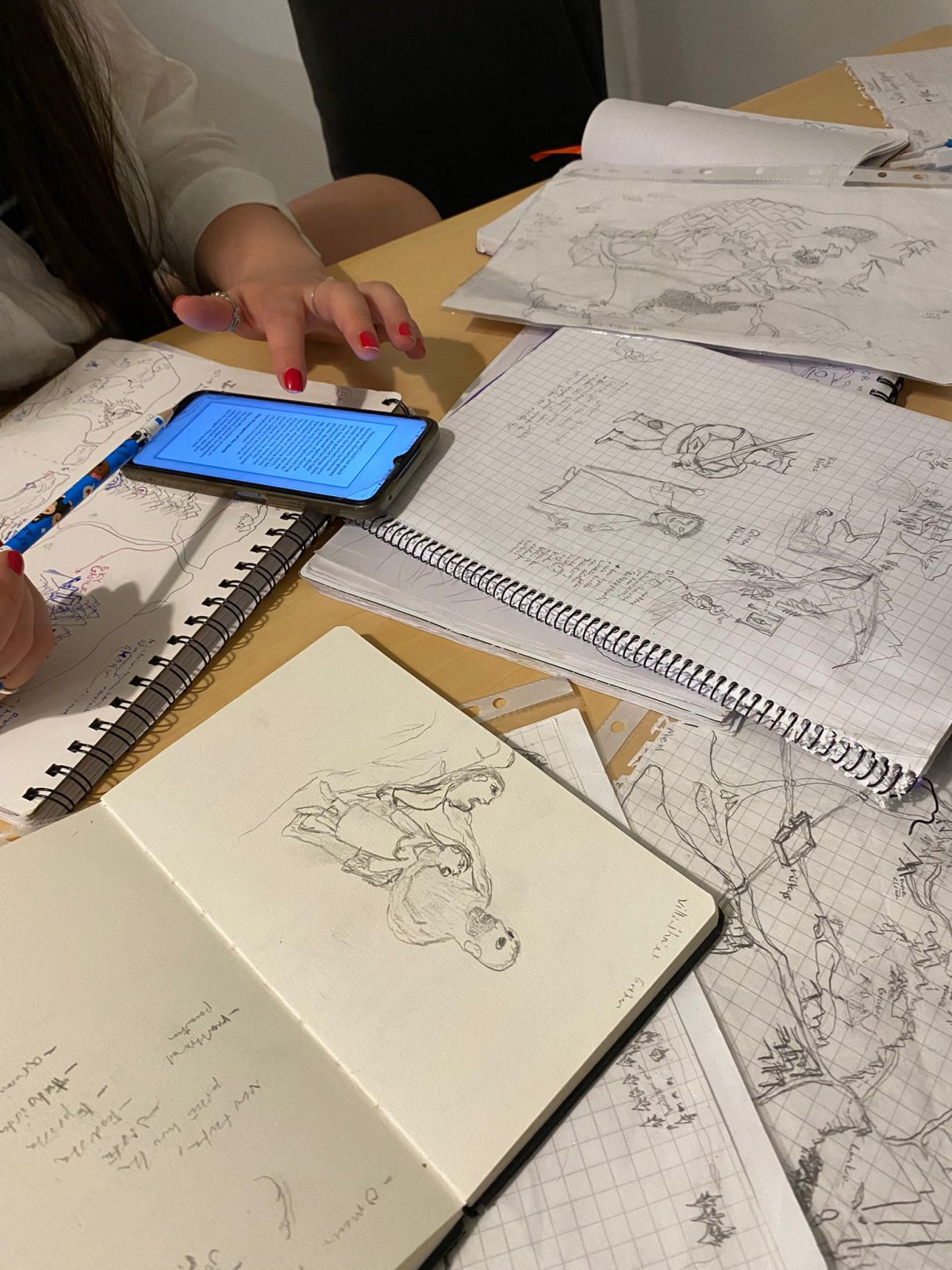 Veronika checking my source material as I was explaining how I did built my world.