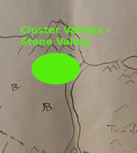 Nbrezor was born in Stone Valley, located on the Northern Coast, just beyond the eastern border of Nuwars, shielded by a massive mountain. This tranquil valley is surrounded by mountains on all sides, with the icy sea meeting its northern edge. Near the coastline lies a small mountain, from which two rivers flow north into the sea. Nestled between these rivers is the small village where Nbrezor was born. The rivers serve as a natural barrier against wildlife.